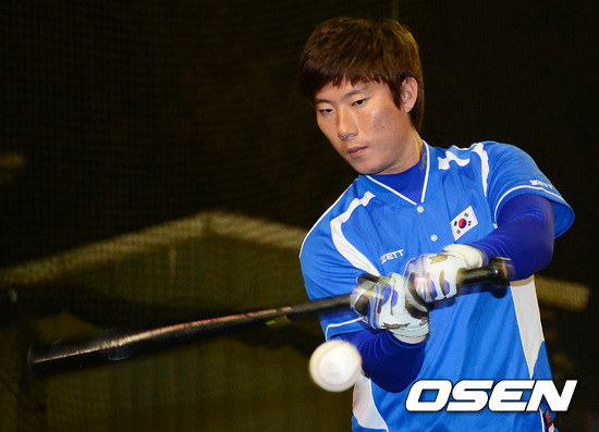 26일 오후 대만 타이중 구장 연습장에서 아시아야구선수권대회 대표팀 고영민이 훈련을 하고 있다.