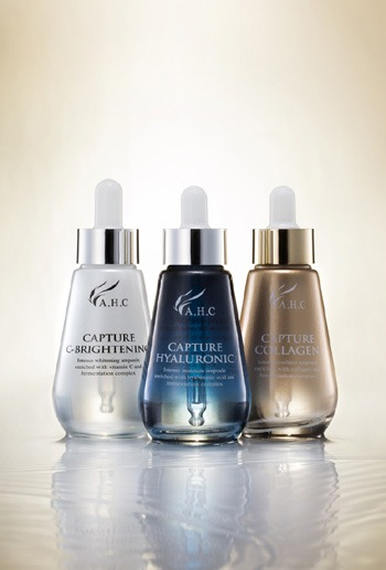 이번 출시된 A.H.C 캡처 앰플은 A.H.C 캡처 콜라겐 앰플, A.H.C 캡처 히아루로닉 앰플, A.H.C 캡처 씨 브라이트닝 앰플 등 총 3종으로 구성됐다.
