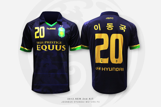 전북이 발표한 2013 시즌 원정 유니폼은 흰색 위주의 K리그 원정 유니폼 칼라에서 탈피, 팀 최초로 네이비 칼라를 사용해 차별화를 시도했다. 또 유니폼 정면에 봉황 문양을 배경으로 선택해 지역 연고 구단의 지역적 의미를 부각시켰고, 골드 칼라를 통해 K리그와 아시아를 제패한 명문 구단의 자부심과 영광을 재현하겠다는 의지를 표현했다.