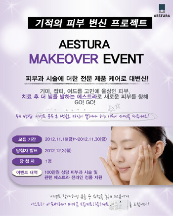 태평양제약의 메디컬 뷰티 브랜드 에스트라(AESTURA)는 자사 페이스북을 통해 기적의 피부 변신 프로젝트 ‘메이크 오버 이벤트’를 30일까지 진행한다.