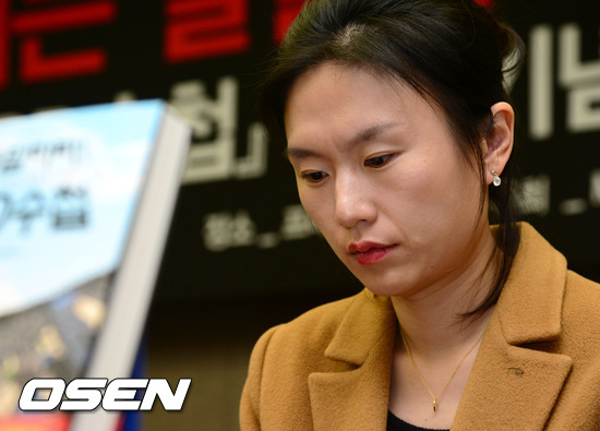 27일 오후 서울 프렌스센터에서 열린 '응답하라! PD수첩' 출간기념 기자간담회에서 이소영 작가가 응답하라PD수첩 책을 바라보고 있다.