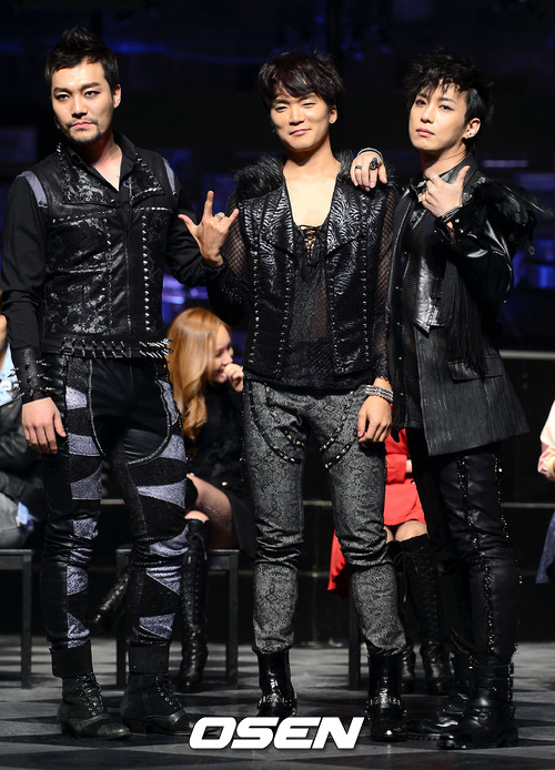 27일 오후 서울 방이동 올림픽 공원 내 우리금융 아트홀에서 진행된 뮤지컬 '락 오브 에이지' 프레스콜에서 조순창, 김신의, 김원준이 포토타임을 갖고 있다.