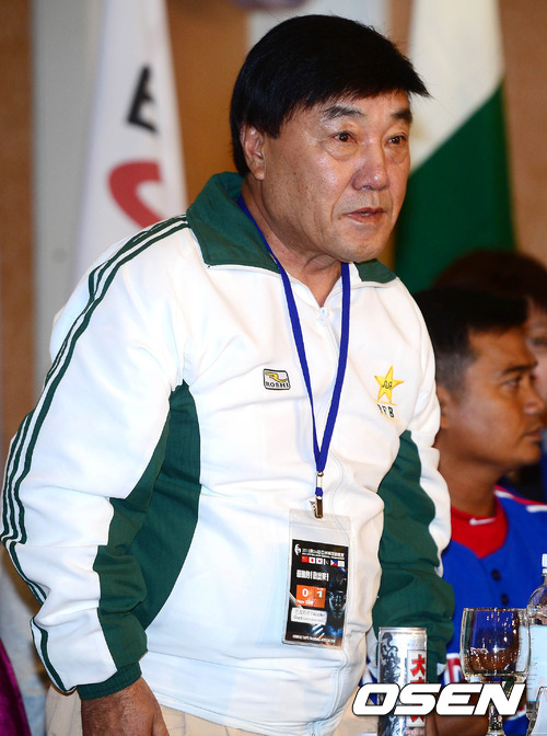 27일 오후 대만 타이중 시내의 한 호텔에서 열린 아시아야구선수권대회 기자회견에서 파키스탄 황동훈 감독이 인사를 하고 있다.