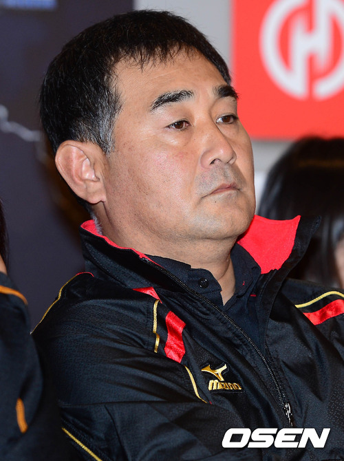 27일 오후 대만 타이중 시내의 한 호텔에서 열린 아시아야구선수권대회 기자회견에서 일본 대표팀 고지마 히로타미 감독이 착석해 있다.