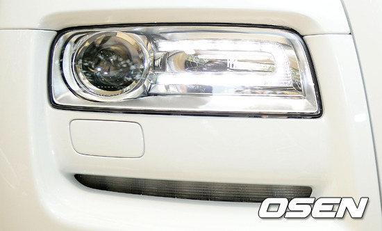28일 오후 서울 강남구 청담동 롤스로이스 매장에서 공개된 롤스로이스 고스트 아르데코의 헤드 라이트.