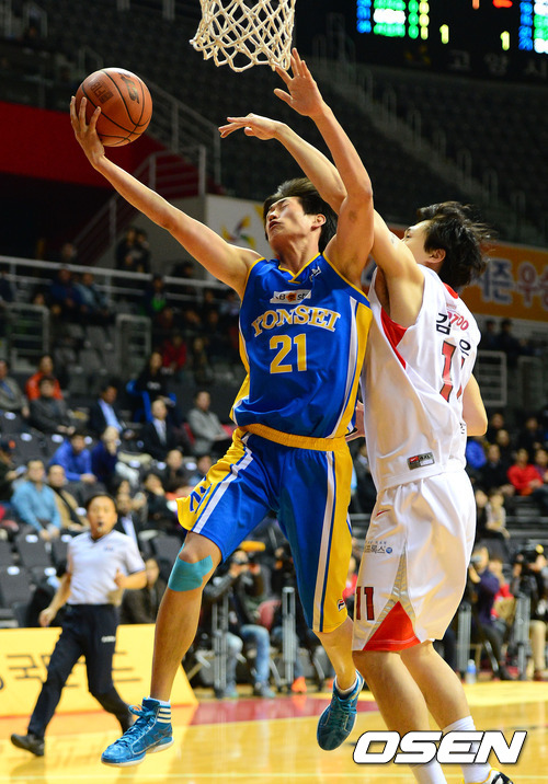 28일 오후 경기 고양시 고양실내체육관에서 열린 '2012 KB국민카드 프로-아마 최강전' 서울 SK와 연세대의 경기, 1쿼터 연세대 최승욱이 레이업슛을 시도하고 있다.
