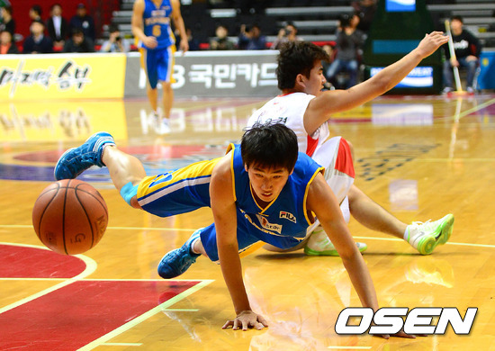 28일 오후 경기 고양시 고양실내체육관에서 열린 '2012 KB국민카드 프로-아마 최강전' 서울 SK와 연세대의 경기, 1쿼터 연세대 최승욱이 공을 놓치고 있다.