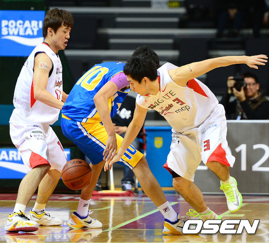 28일 오후 경기 고양시 고양실내체육관에서 열린 '2012 KB국민카드 프로-아마 최강전' 서울 SK와 연세대의 경기, 3쿼터 연세대 최준용이 드리블 돌파 중 공을 놓치고 있다.