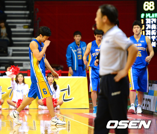 28일 오후 경기 고양시 고양실내체육관에서 열린 '2012 KB국민카드 프로-아마 최강전' 서울 SK와 연세대의 경기, 4쿼터 연세대 허웅이 5반칙으로 퇴장당하고 있다.