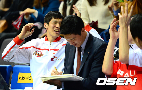 28일 오후 경기 고양시 고양실내체육관에서 열린 '2012 KB국민카드 프로-아마 최강전' 서울 SK와 연세대의 경기, 4쿼터 SK 김선형이 역전에 환호하고 있다.