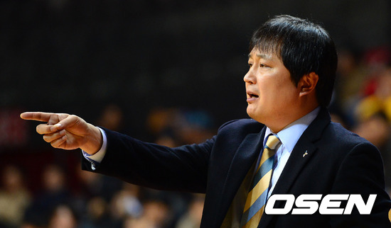 28일 오후 경기 고양시 고양실내체육관에서 열린 '2012 KB국민카드 프로-아마 최강전' 안양 KGC와 중앙대의 경기, 3쿼터 KGC 이상범 감독이 선수들에게 작전은 지시하고 있다.