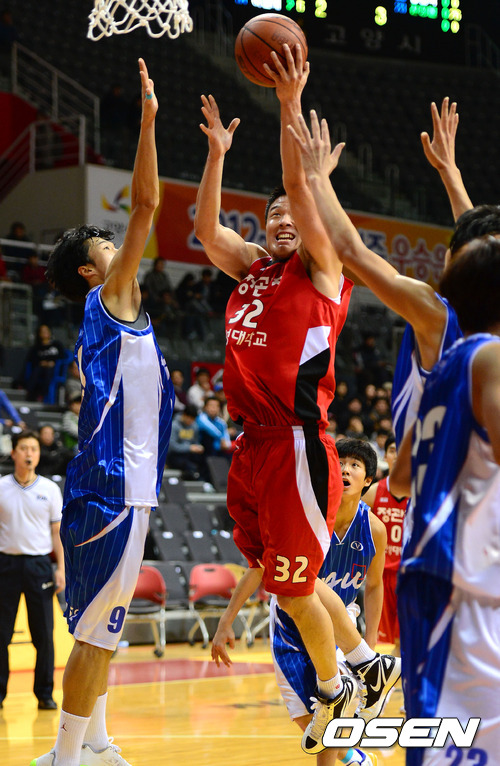 28일 오후 경기 고양시 고양실내체육관에서 열린 '2012 KB국민카드 프로-아마 최강전' 안양 KGC와 중앙대의 경기, 3쿼터 KGC 김일두가 레이업슛을 시도하고 있다.