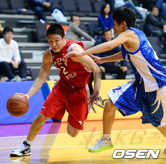 28일 오후 경기 고양시 고양실내체육관에서 열린 '2012 KB국민카드 프로-아마 최강전' 안양 KGC와 중앙대의 경기, 4쿼터 KGC 김일두가 중앙대 정인덕을 돌파하고 있다.