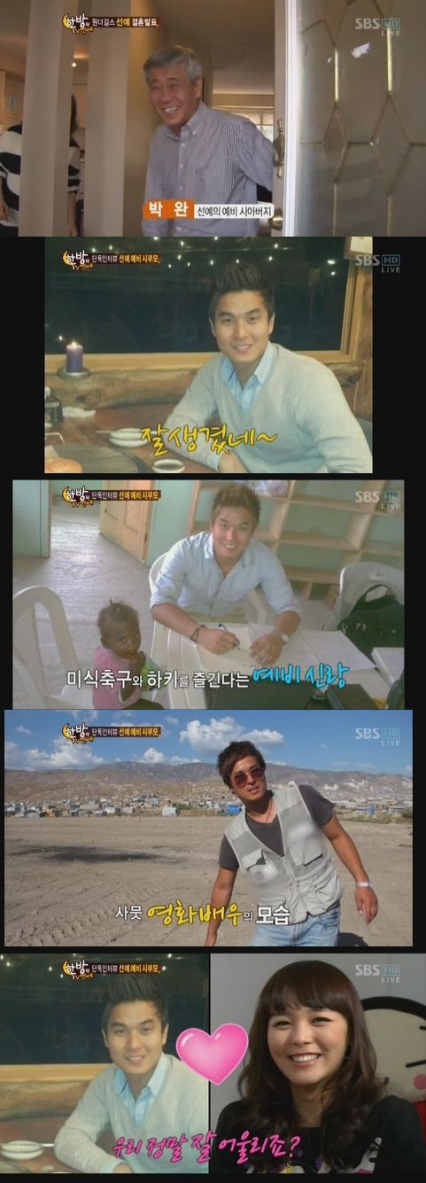 시아버지 박완 씨는 "선예가 착하고 겸손하고 얼굴도 예쁘고 애교도 있고 자랑할 게 많다. 다 좋은 것 같다"며 "선예를 보는 순간 아내와 함께 '선예가 우리 식구가 될 것 같다'는 걸 느꼈다"고 밝혔다.