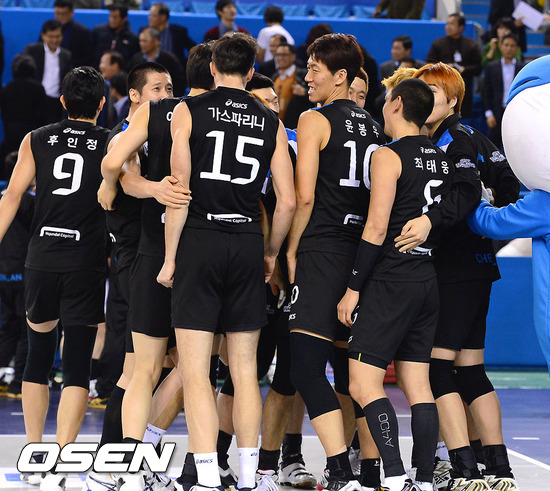 경기종료 후 현대캐피탈 선수들이 승리의 기쁨을 나누고 있다/ soul1014@osen.co.kr