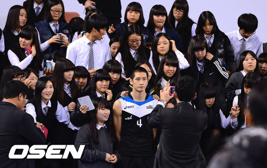 경기종료 후 현대캐피탈 문성민이 팬들과 포즈를 취하고 있다/ soul1014@osen.co.kr