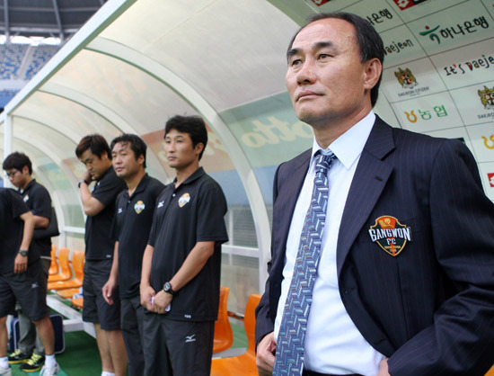상기된 표정으로 인터뷰장에 들어선 김 감독은 소감을 묻는 질문에 “강등 싸움이 힘들었던 건 아니었다”고 말문을 열며 “사실 구단 안팎의 상황들이 더 힘들었다. 사장이 사퇴를 하고 그러면서 선수들의 월급이 체불되며 그런 악조건 속에서 선수들을 끌고 가기가 너무나 힘들었다. 하지만 구단주인 강원도지사는 이런 어려운 상황에 대해 어떠한 해결책도 제시하지 못했다”며 서운한 감정을 드러냈다.