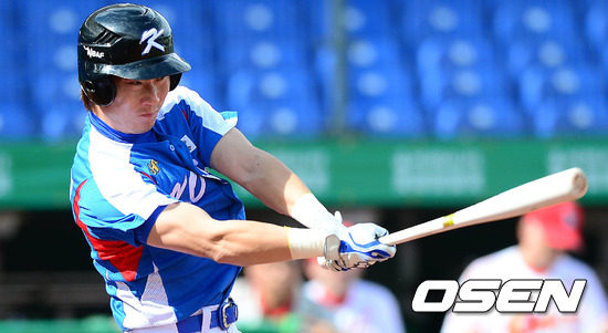 29일 오후 대만 타이중 인터컨티넨탈구장에서 열린 '제26회 아시아야구선수권대회' 한국과 중국의 경기 2회말 2사 1루 대타 고영민이 중전안타를 치고 있다.