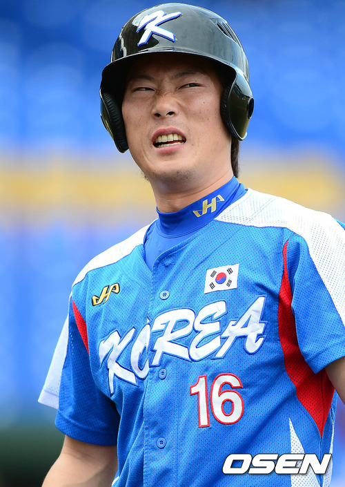 29일 오후 대만 타이중 인터컨티넨탈구장에서 열린 '제26회 아시아야구선수권대회' 한국과 중국의 경기 7회초 1사 고영민이 땅볼로 물러나자 아쉬운 표정을 짓고 있다.