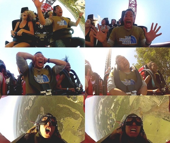 또 자동차 롤러코스터 주행시 받는 6G의 중력을 견디기 위한 테스트에서 기절한 표정, 머리를 감싸 안으며 공포에 떤 표정 등을 지어보여 눈길을 끌었다.