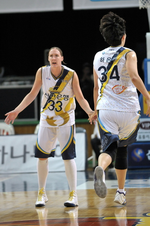 신한은행 에스버드는 29일 안산와동실내체육관에서 열린 'KDB금융그룹 2012-13 여자프로농구' KB스타즈와의 경기에서 25득점 12리바운드를 기록한 캐서린 크라예벨드를 앞세워 70-62 승리를 거두고 2연승을 달렸다. 신한은행은 10승 고지(4패)에 오르며 3위 KB(6승7패)와의 승차도 벌렸다.
