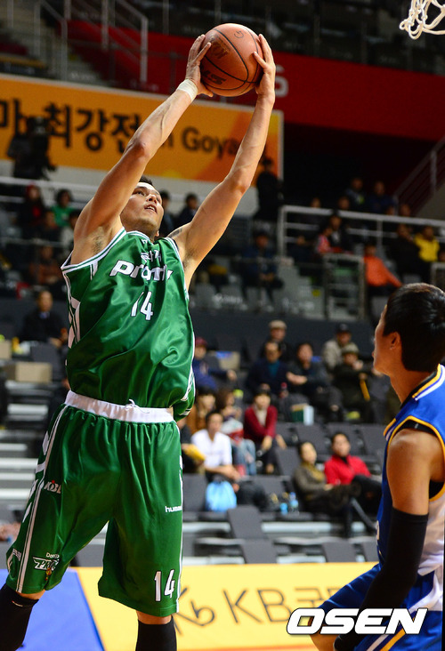 29일 오후 경기 고양시 고양실내체육관에서 열린 '2012 KB국민카드 프로-아마 최강전' 원주 동부와 한양대의 경기, 1쿼터 동부 이승준이 골밑슛을 시도하고 있다.
