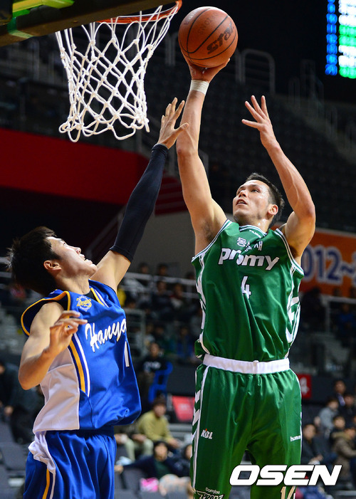 29일 오후 경기 고양시 고양실내체육관에서 열린 '2012 KB국민카드 프로-아마 최강전' 원주 동부와 한양대의 경기, 1쿼터 동부 이승준이 골밑슛을 시도하고 있다.