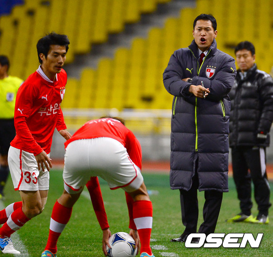 29일 오후 부산 아시아드주경기장에서 열린 현대오일뱅크 K리그 2012 그룹A 부산 아이파크와 울산 현대의 경기 전반 부산 안익수 감독이 작전 지시를 하고 있다