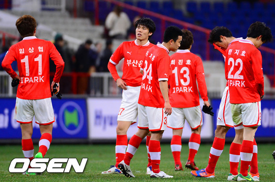 경기종료 후 경기에 패한 부산 선수들이 아쉬워하고 있다/ soul1014@osen.co.kr