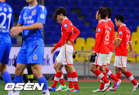 경기종료 후 부산 선수들이 아쉬워하고 있다/ soul1014@osen.co.kr