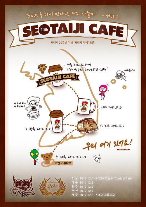 또한 거리의 제약 때문에 Seotaiji Cafe를 방문할 수 없는 지방 팬들을 위해서 커피 버스를 운행한다. 12월 일 대구를 시작으로 5일 광주, 7일 부산 지역을 순회하며 커피를 나눠 줄 예정이며, 특히 제주도에서는 서태지와 환경 이벤트로 인연이 된 조안 스튜디오를 통해 12월 3일 ~ 7일까지 5일 동안 커피를 제공한다.