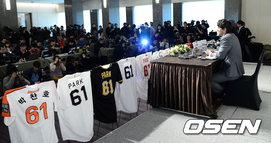 30일 오전 서울 소공동 플라자 호텔 다이아몬드홀에서 '코리안 특급' 한화 박찬호의 은퇴 관련 공식 기자회견이 열렸다.
