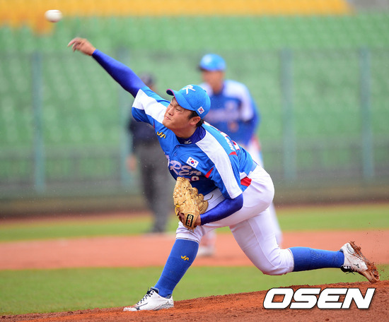 30일 오후 대만 타이중 인터컨티넨탈구장에서 열린 '제26회 아시아야구선수권대회' 한국과 파키스탄의 경기 선반 홍성무가 역투하고 있다.