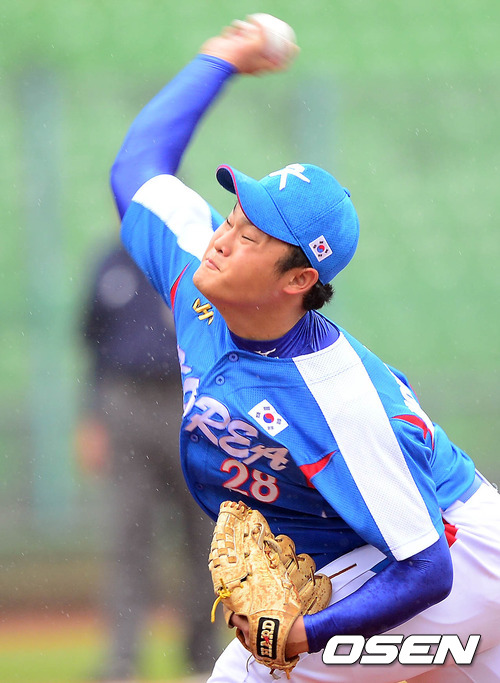 30일 오후 대만 타이중 인터컨티넨탈구장에서 열린 '제26회 아시아야구선수권대회' 한국과 파키스탄의 경기 1회말 한국 선발 홍성무가 역투하고 있다.