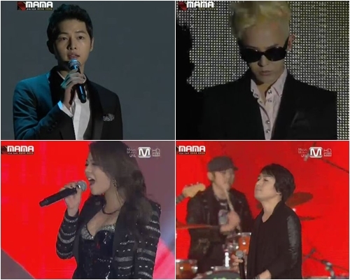 송중기와 GD, 에일리, 피아, 방용국, 정재일이 '2012 엠넷 아시안 뮤직 어워드(이하 MAMA)'의 오프닝 공연을 화려하게 장식했다.