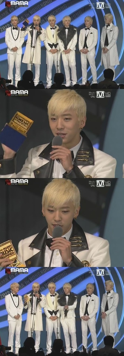 B.A.P는 는 30일 오후 7시 홍콩 컨벤션 & 익스히비션 센터에서 열린 'MAMA'에서 엠넷 PD 선정 특별상을 수상하고 감사 인사를 건넸다.