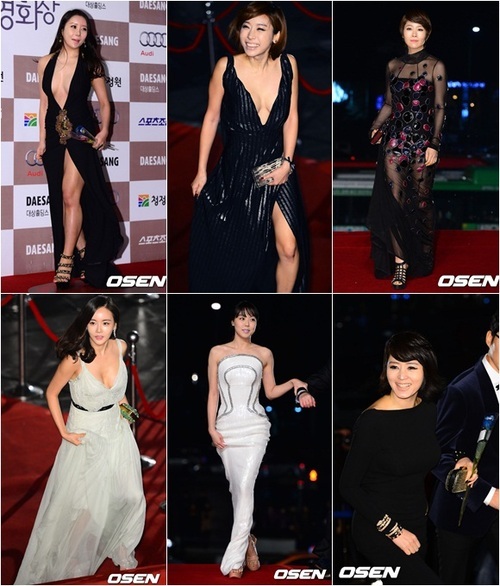 그런가하면 이날 MC를 맡은 김혜수는 노출 대신 우아한 매력을 뽐내 눈길을 끌었다. 김혜수는 이날 몸의 S라인이 그대로 드러나는 블랙 롱드레스를 입었다. 어깨를 일자 라인으로 다 감싸고 긴 팔로 몸을 가렸지만, 등은 과하지 않게 노출, 여기에 팔찌, 신발, 핸드백 등의 화려한 액세서리가 더해 지루함을 피했다. 과한 노출이 입방아에 오르는 요즘, 김혜수 다운 현명한 선택이었다는 반응이 많다.