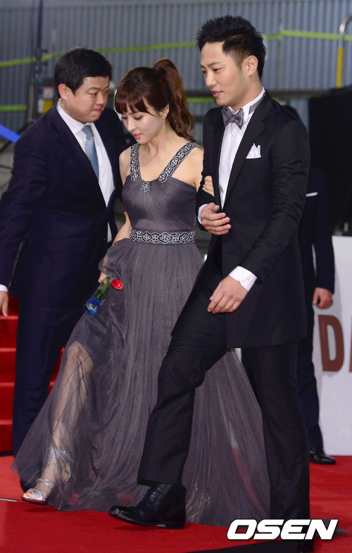 30일 오후 서울 세종문화회관에서 열린 '제33회 청룡영화상 시상식'에서 한혜진과 진구가 포토월로 입장하고 있다.