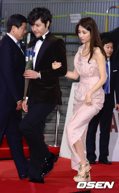 30일 오후 서울 세종문화회관에서 열린 '제33회 청룡영화상 시상식'에서 윤상현과 박하선이 포토월로 입장하고 있다.