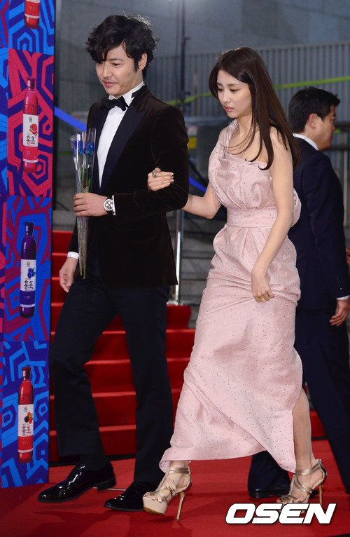 30일 오후 서울 세종문화회관에서 열린 '제33회 청룡영화상 시상식'에서 윤상현과 박하선이 포토월로 입장하고 있다.