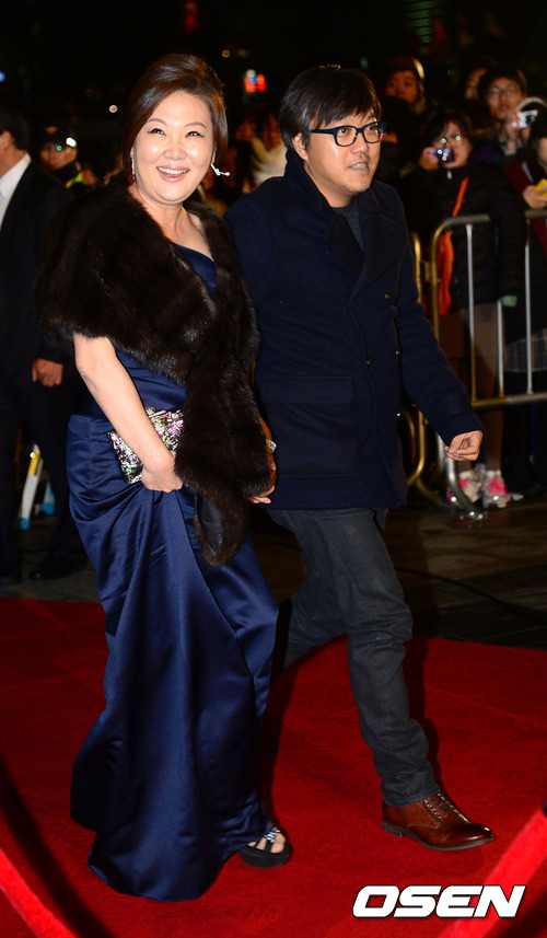 30일 오후 서울 세종문화회관에서 열린 '제33회 청룡영화상 시상식'에서 김해숙, 최동원 감독이 레드카펫을 밟고 있다.
