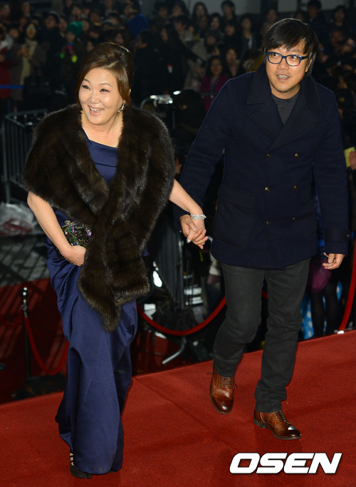 30일 오후 서울 세종문화회관에서 열린 '제33회 청룡영화상 시상식'에서 김해숙과 최동훈 감독이 레드카펫을 밟으며 입장하고 있다.
