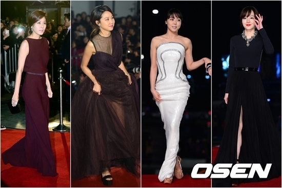 이날 ‘내 아내의 모든 것’으로 여우주연상을 받은 임수정 역시 다른 30대 여배우들과 마찬가지로 우아한 라인의 롱드레스를 선택했다. 검정색의 긴 드레스 사이로 가느다란 다리가 돋보이는 드레스를 입은 그는 붉은색 입술과 볼드한 목걸이로 포인트를 줘 고혹적인 여신 드레스 룩을 완성시켰다.