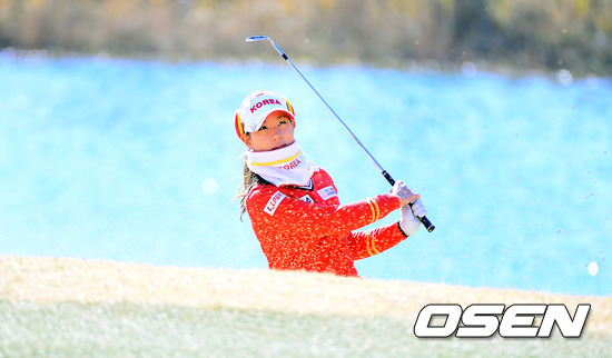 1일 부산 베이사이드 G.C.에서 열린 KB금융컵 제11회 한일 여자프로골프 국가대항전에서 7번홀 김자영이 벙커샷을 날리고 있다