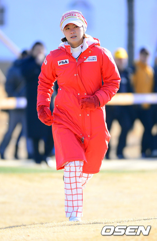 1일 부산 베이사이드 G.C.에서 열린 KB금융컵 제11회 한일 여자프로골프 국가대항전, 경기 전 최나연이 1번홀로 들어서고 있다.