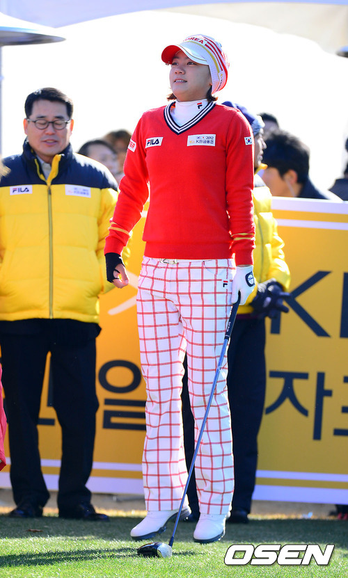 1일 부산 베이사이드 G.C.에서 열린 KB금융컵 제11회 한일 여자프로골프 국가대항전, 최나연이 가볍게 몸을 풀고 있다.