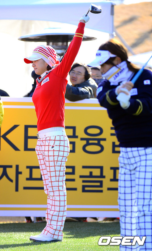 1일 부산 베이사이드 G.C.에서 열린 KB금융컵 제11회 한일 여자프로골프 국가대항전, 최나연이 가볍게 몸을 풀고 있다.