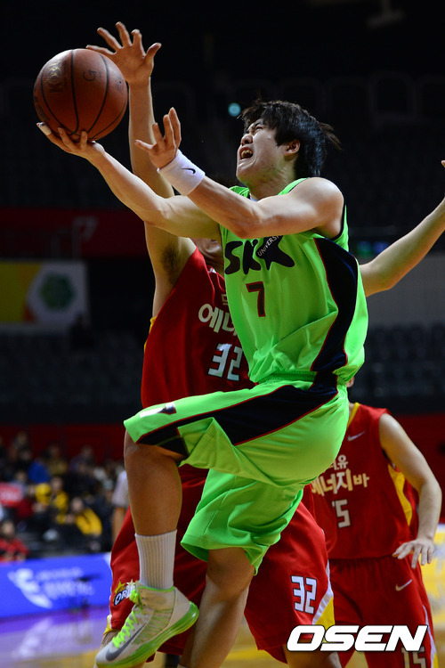 1일 오후 경기 고양시 고양실내체육관에서 열린 '2012 KB국민카드 프로-아마 최강전' 고양 오리온스와 성균관대의 경기 1쿼터 성균관대 임준수가 오리온스 김승원의 슛블록을 피해 레이업슛을 시도하고 있다.