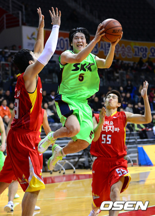 1일 오후 경기 고양시 고양실내체육관에서 열린 '2012 KB국민카드 프로-아마 최강전' 고양 오리온스와 성균관대의 경기 1쿼터 성균관대 송병준이 레이업슛을 시도하고 있다.