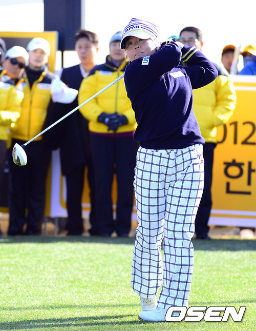 1일 부산 베이사이드 G.C.에서 열린 KB금융컵 제11회 한일 여자프로골프 국가대항전,1번홀에서 일본팀 후도 유리가 티샷을 날리고 있다